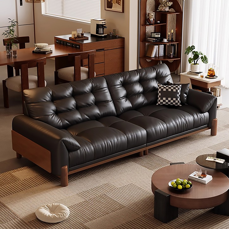 法莎蒂意式 极简皮艺直排棉花糖沙发 极简拉扣真皮沙发小户型意式