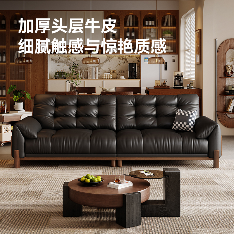 政府补贴中古风高级油蜡皮艺客厅极简约2025新款 复古沙发 现代美式