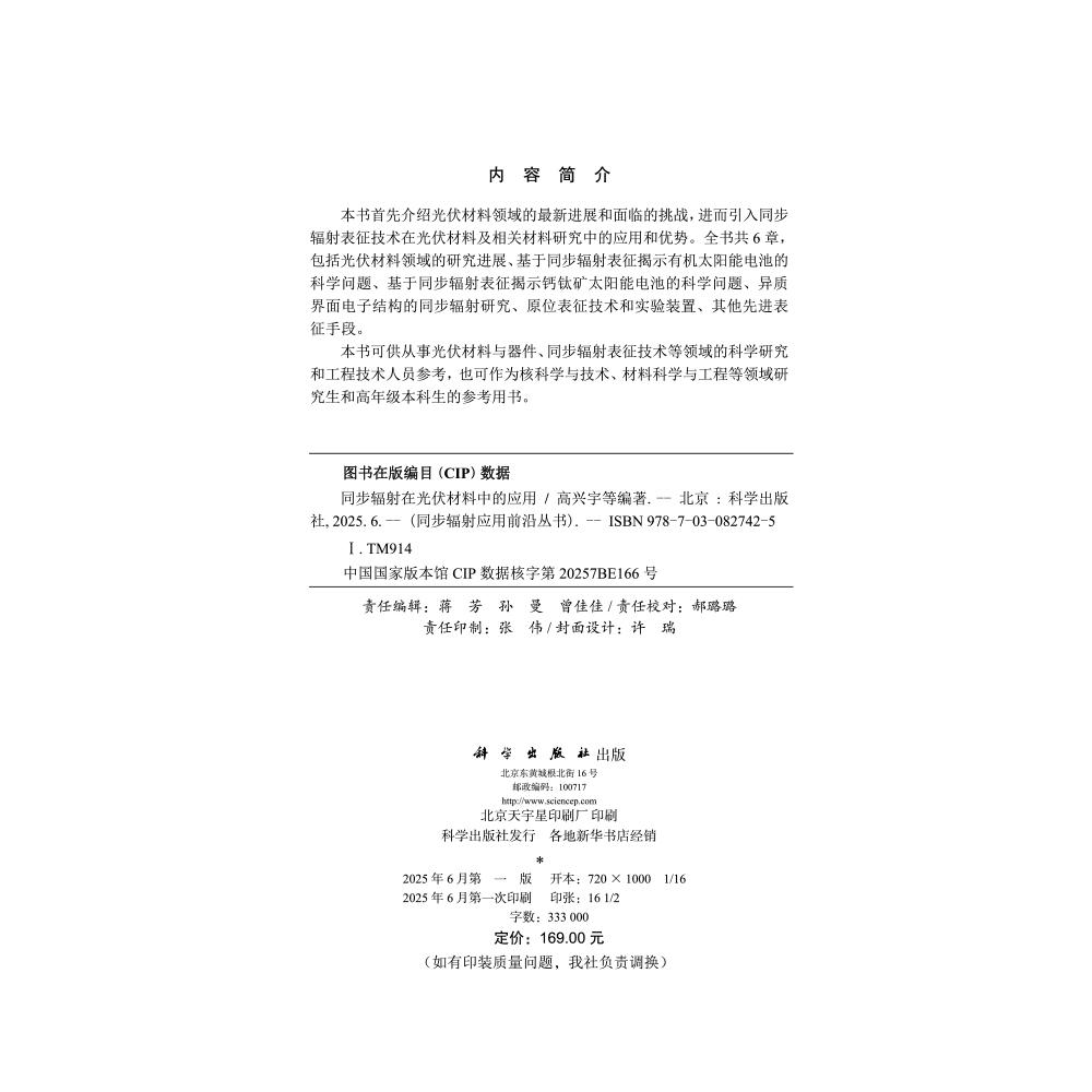 何丙辰 同步辐射应用前沿丛书 应用 9787030827425 社 科学出版 曹亮 杨春明 高兴宇 同步辐射在光伏材料中 现货速发