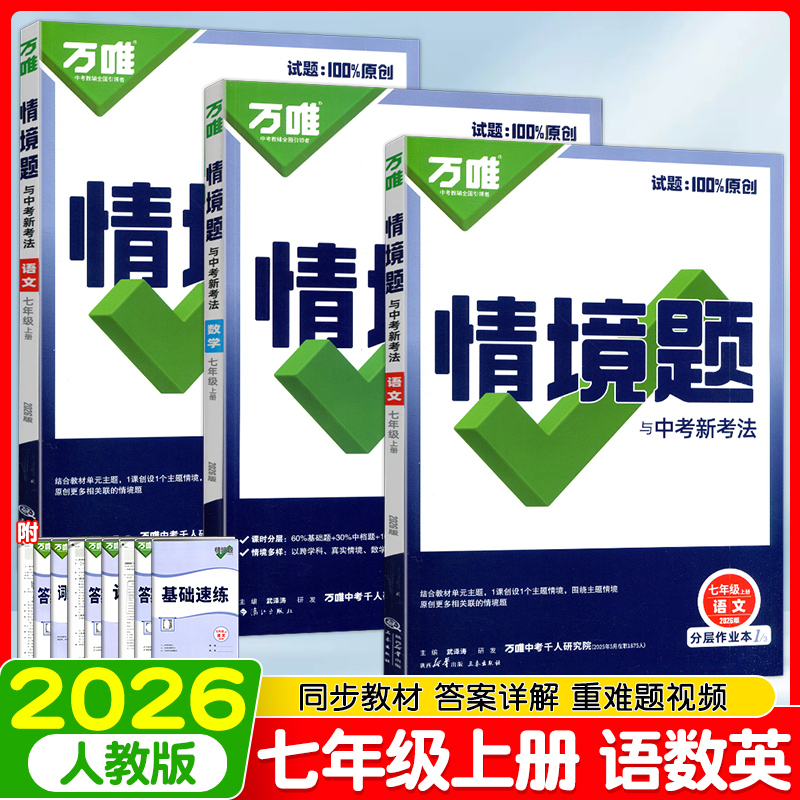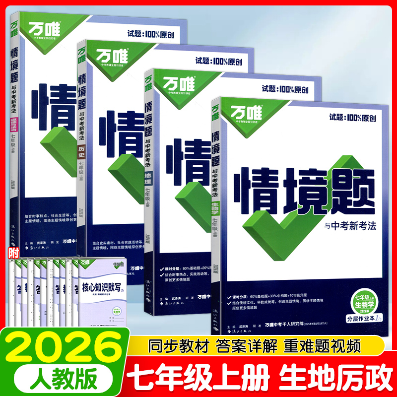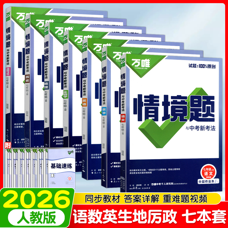 教材同步练习册分层作业本万唯基础题 初一数学华师版 2026万唯情境题七年级上册数学湘教版 语文英语生物地理历史道德与法治人教版