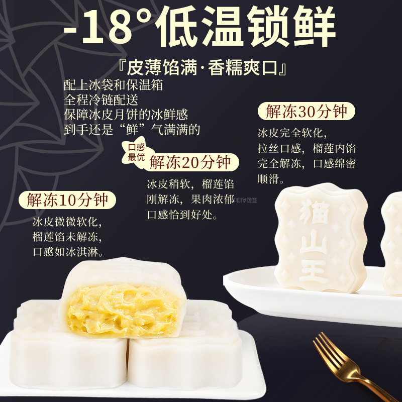 猫山王榴莲冰皮月饼中秋节月饼礼盒装 送礼水果流心团购官方旗舰店