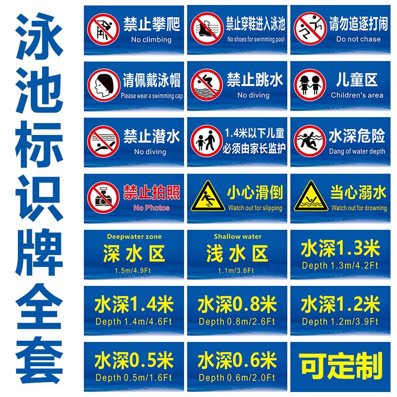 游泳馆注意事项标识牌泳池浴池水池警示牌水深危险玩水当心溺水小心地滑推陪同消防管理制度食堂标语有电