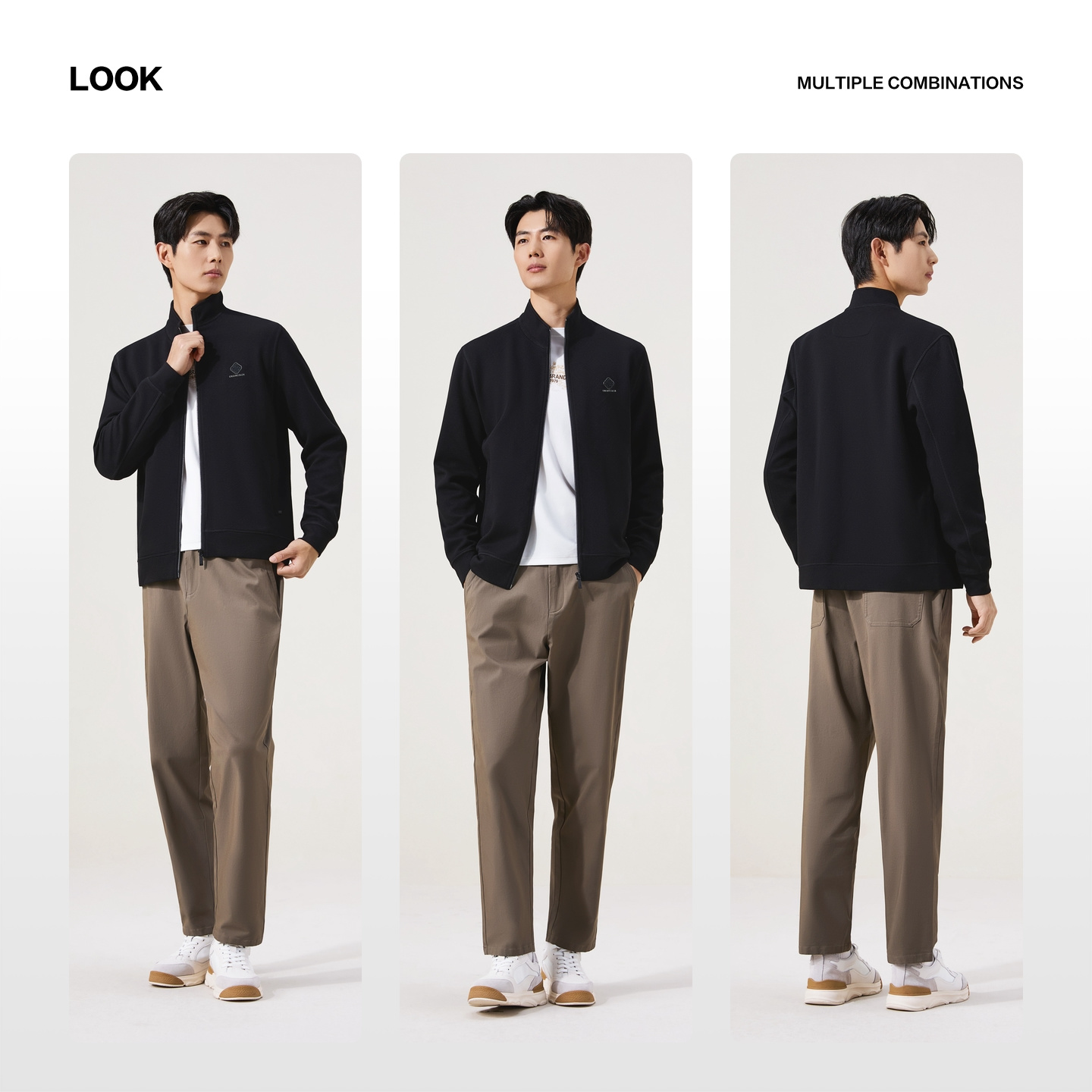 秋冬季 大码 新款 长袖 无帽运动外套 黑色上衣帽衫 李宁卫衣男圆领正品
