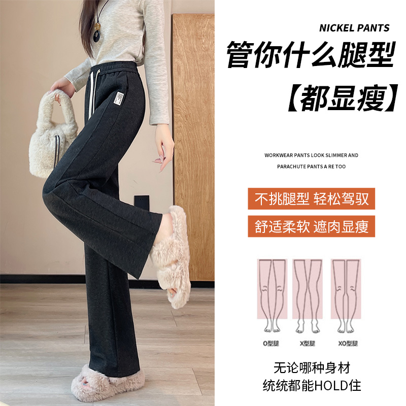 子 直筒垂感慵懒秋冬加绒宽松阔腿裤 燕麦白色糯米裤 女春秋2025新款