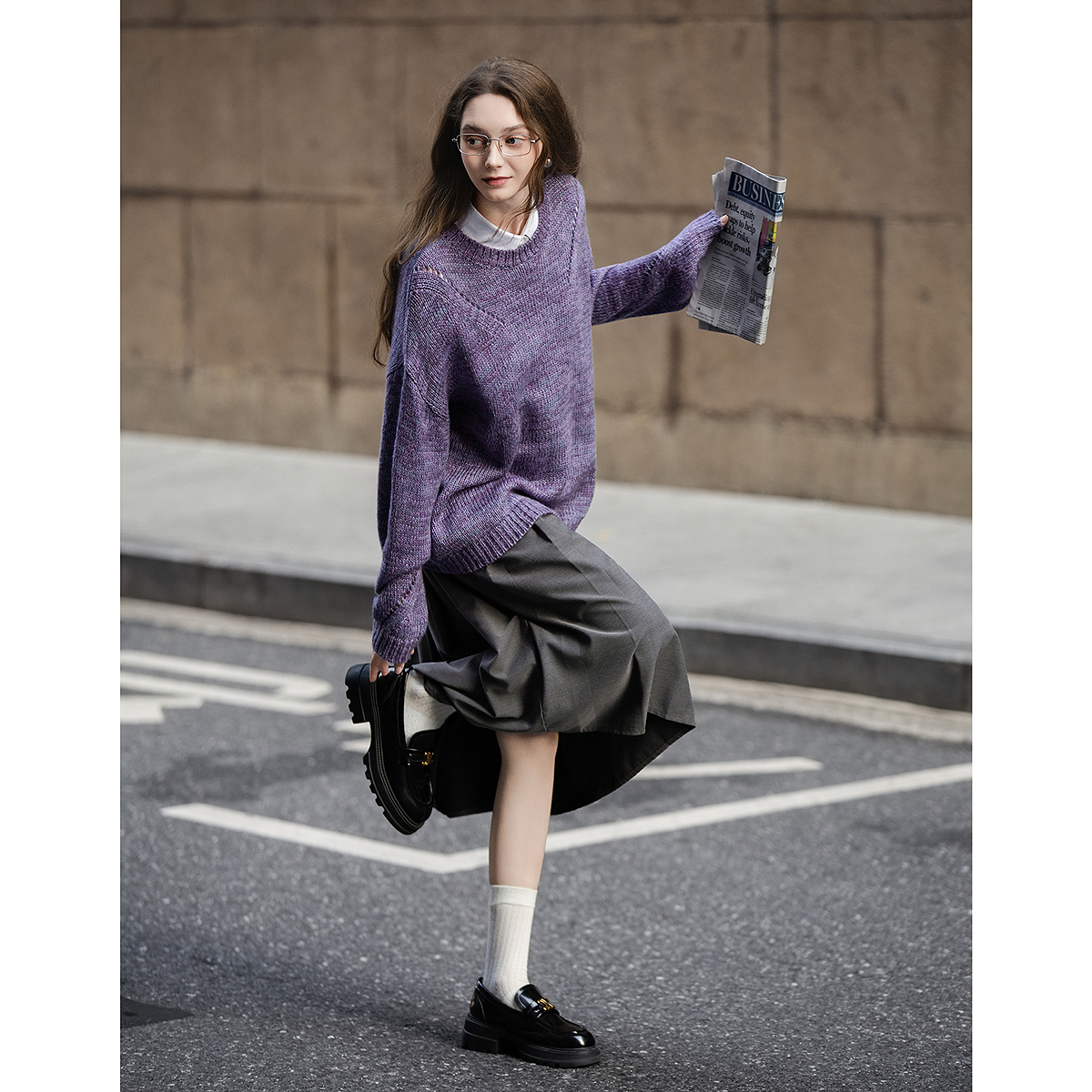 软糯绵羊毛辣妹针织衫 CRAWFISH纯欲一字肩毛衣修身 女 明星同款