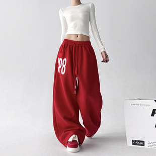 街舞阔腿裤 字母印花垂感卫裤 潮牌宽松运动休闲裤 新款 女2025秋季