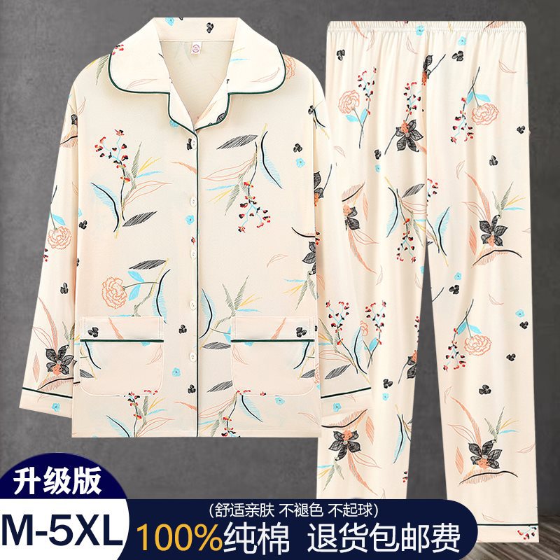 开衫 长袖 家居服两件套宽松可外穿 新款 纯棉睡衣女2024年春秋季