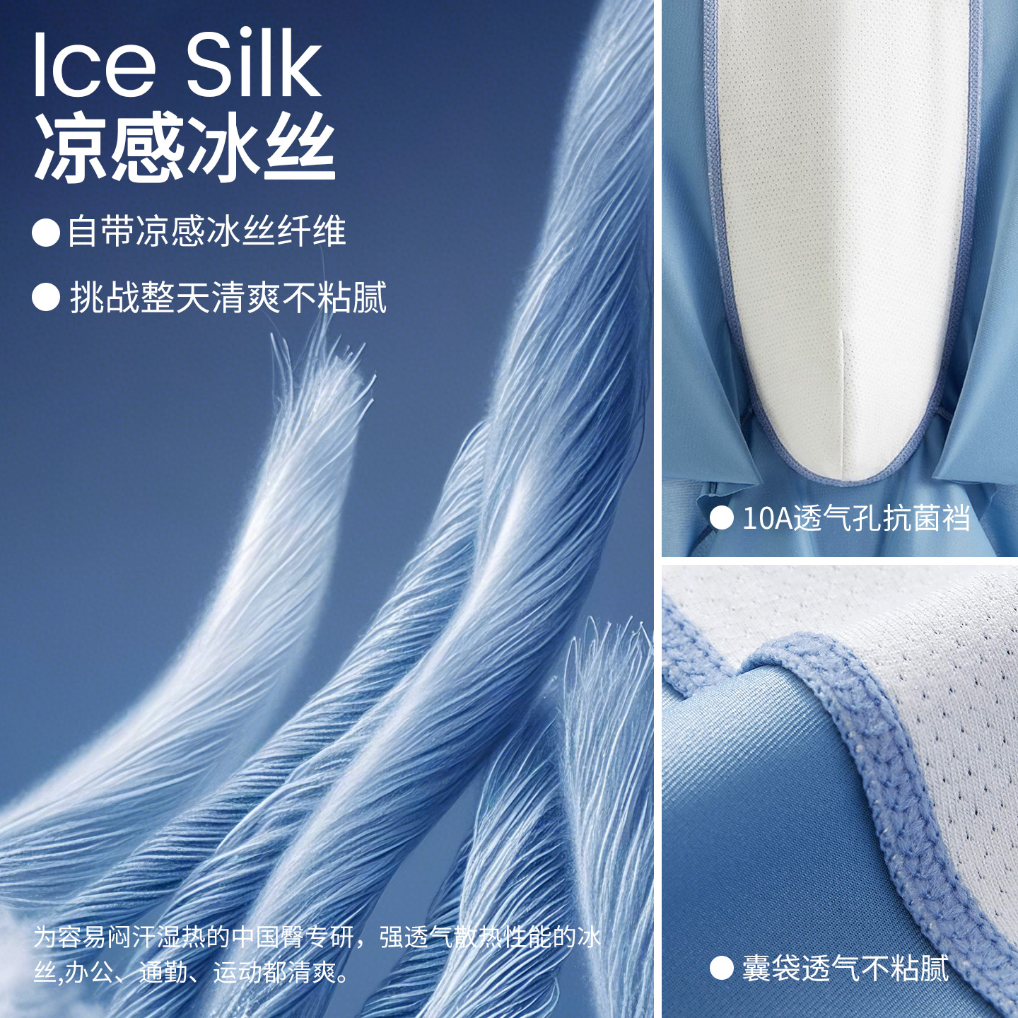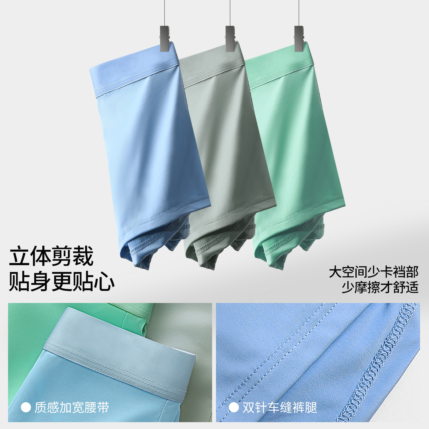 男抗菌四角裤 冰丝内裤 运动平角裤 舒适透气短裤 3条装 头超薄款 男士