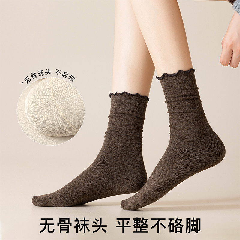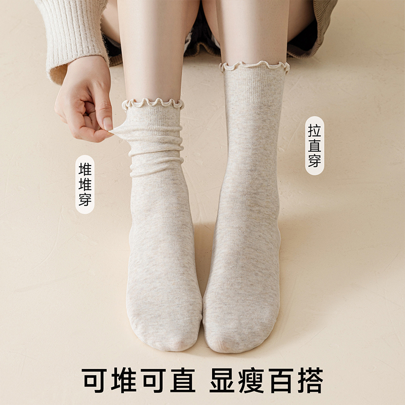 无骨纯棉木耳边冬季 中筒袜秋季 长袜防臭 爆款 堆堆袜子女2025新款