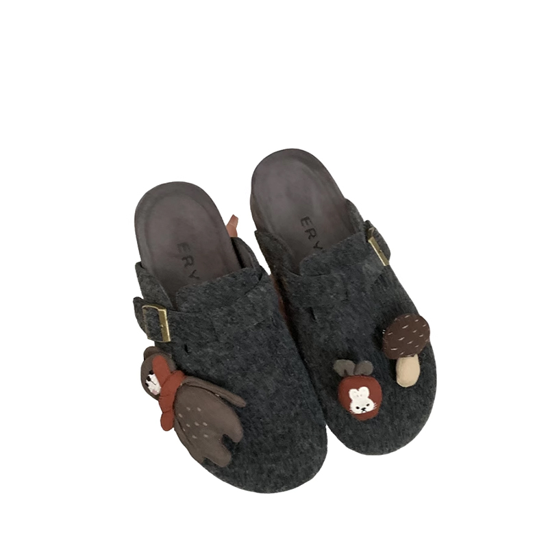 张凌赫同款 厚底增高可外穿预 百丽厚岛吐司2代包头冬加毛勃肯拖鞋