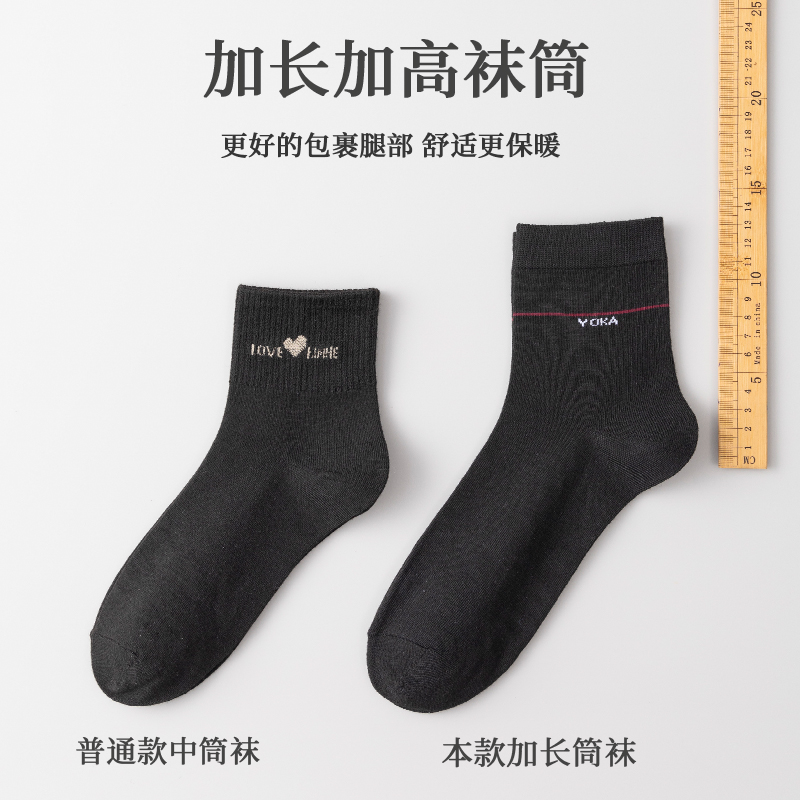 袜子女中筒袜纯棉春秋咖色美拉德堆堆袜秋冬搭配小皮鞋 长袜 勃肯鞋