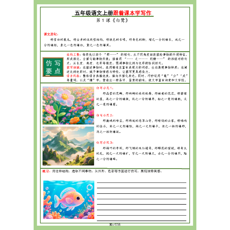 2025秋新版 五年级上册语文跟着课本学写作练习加范文课内句子仿写专练仿写要点精选示例写作思路引导写作指导素材积累每日一练