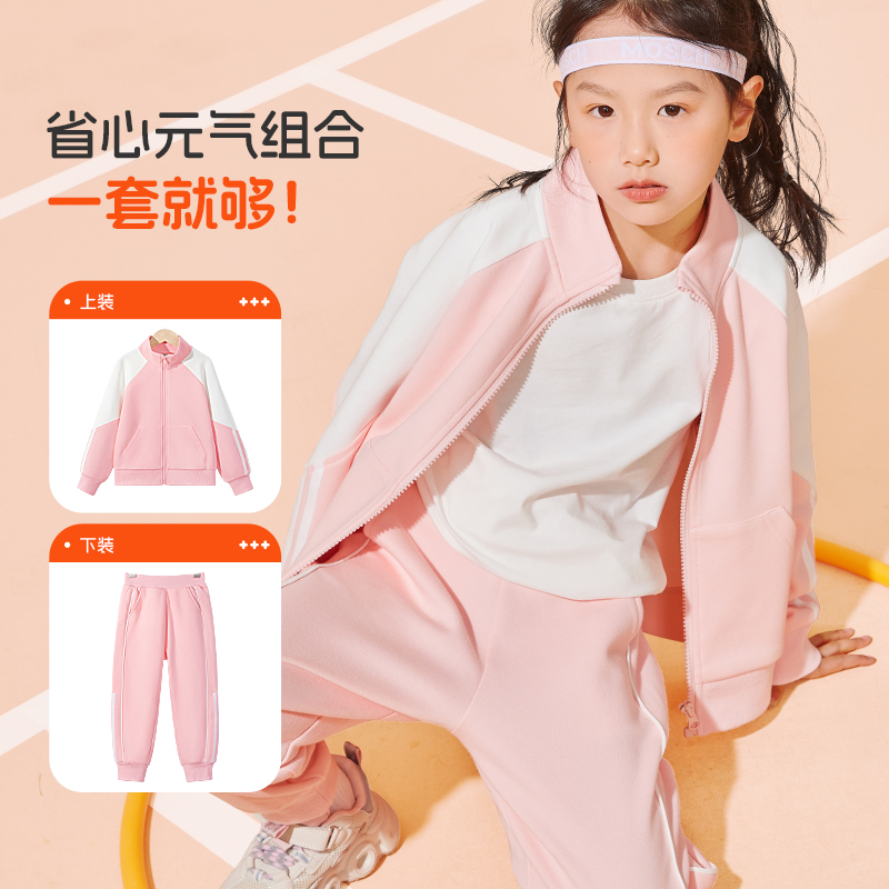 潮 女孩中大童秋装 班尼路YBB系列女童套装 儿童撞色运动服2025新款