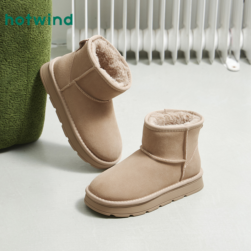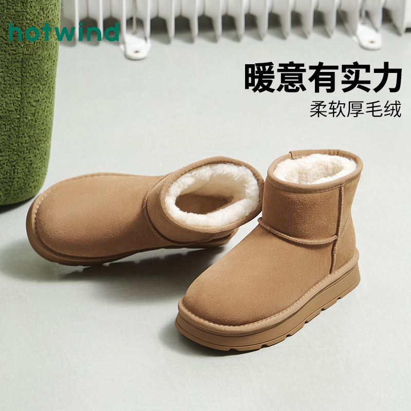 棕色复古短筒靴子户外保暖棉鞋 新款 2025年冬季 热风加绒雪地靴女鞋