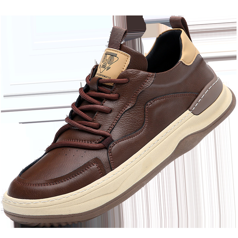 子牛皮透气欧洲站潮流百搭棕色复古真皮休闲板鞋 男鞋 国货大牌