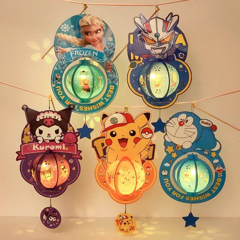 中秋节儿童手提灯笼2025新款 手工diy发光音乐投影手提卡通小花灯