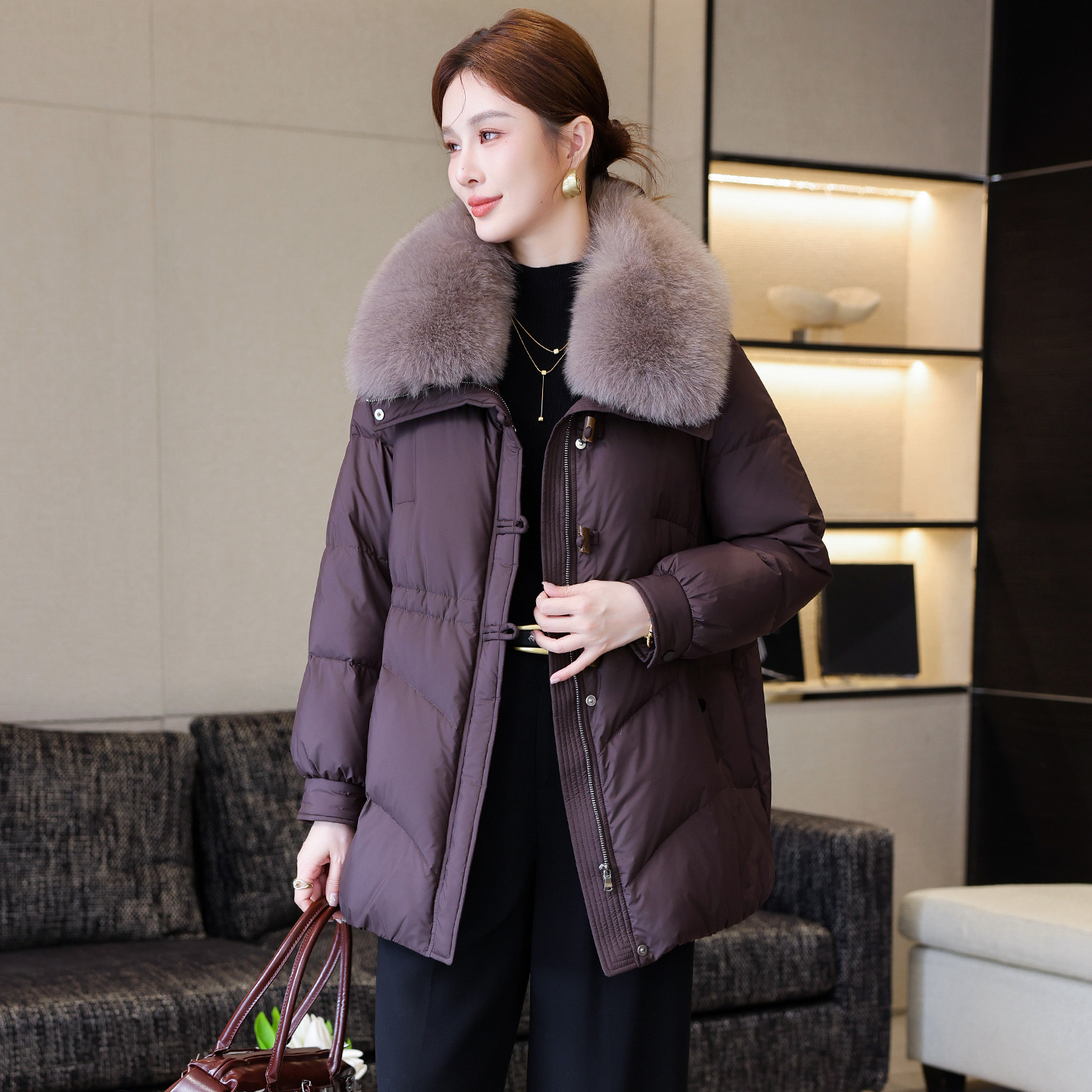 MOCO羽绒服90鸭绒高领连帽轻暖高密防钻绒双门襟中长款 量感暖核