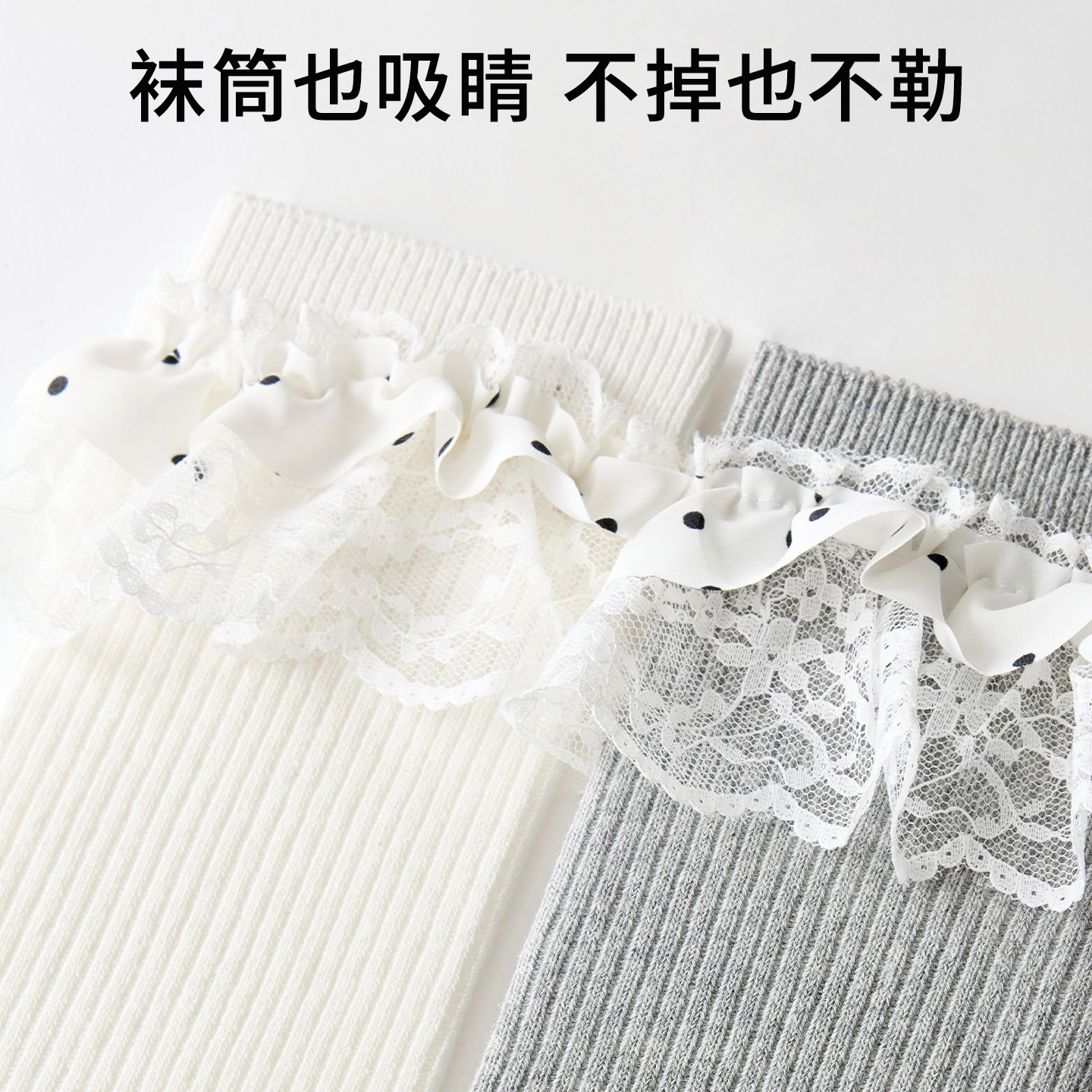 长袜 中筒袜竖条纹花边棉袜miu系配小皮鞋 派米波点袜子女款 春秋款