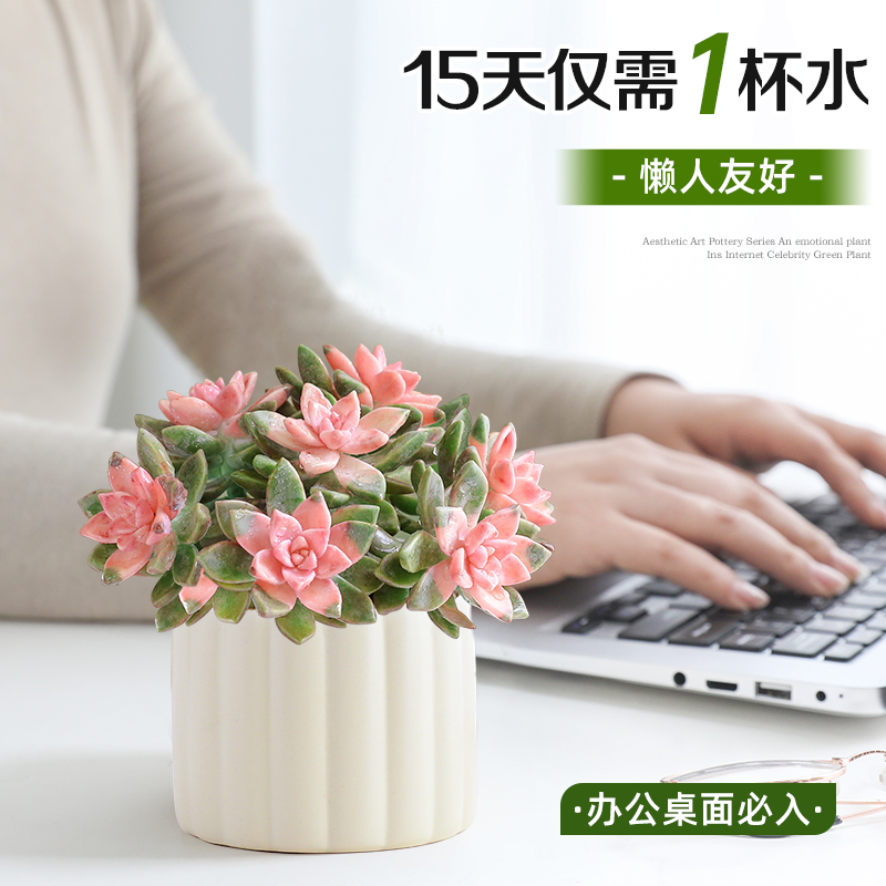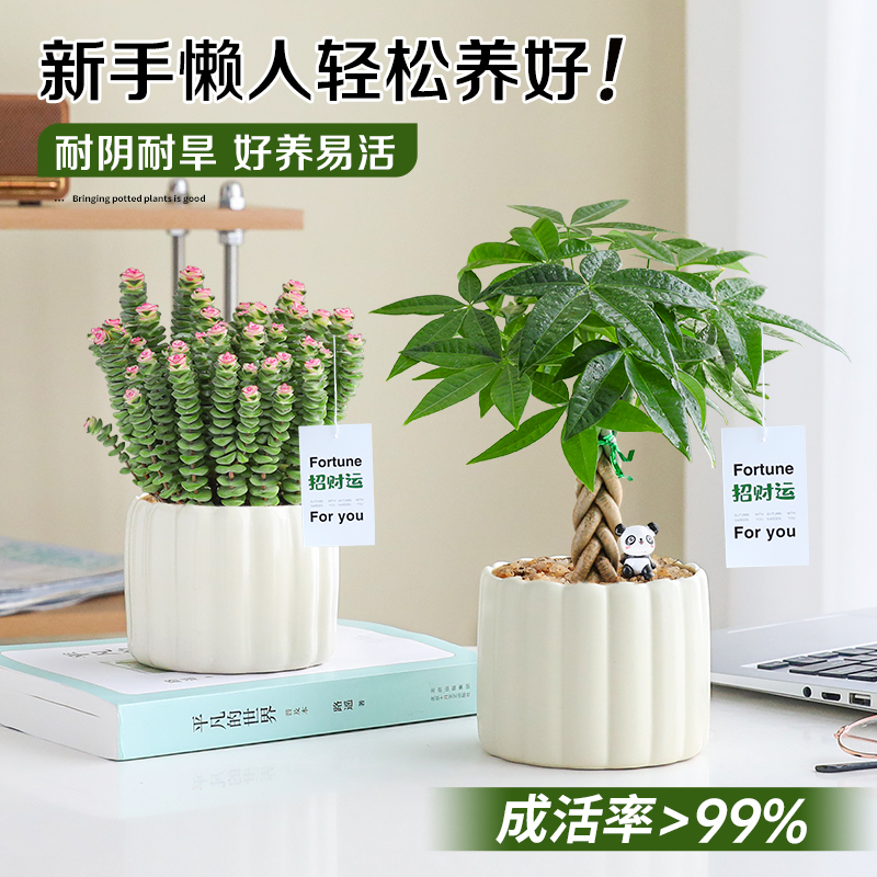多肉植物组合盆栽陶瓷花盆土办公室花卉绿植办公桌客厅好养种植