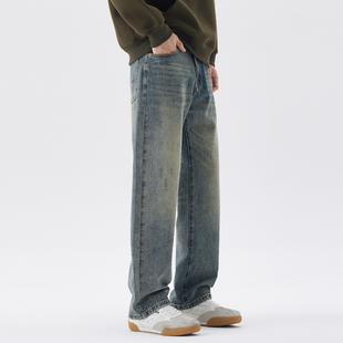 男士 阔腿休闲裤 春秋季 直筒宽松男生美式 子 2025新款 回力浅蓝牛仔裤