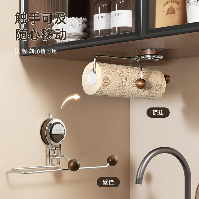 吸盘厨房纸巾架免打孔橱柜挂架抽纸卷纸架懒人抹布保鲜膜上墙墙面