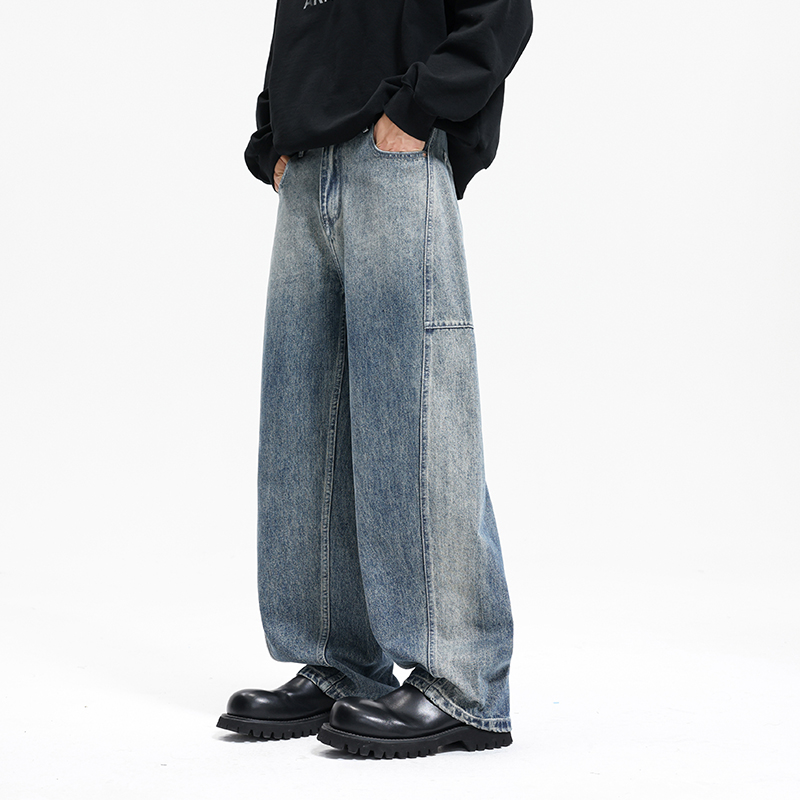 香蕉裤 渐变拼接设计弯刀阔腿休闲长裤 牛仔裤 秋季 子 男款 迈特优美式