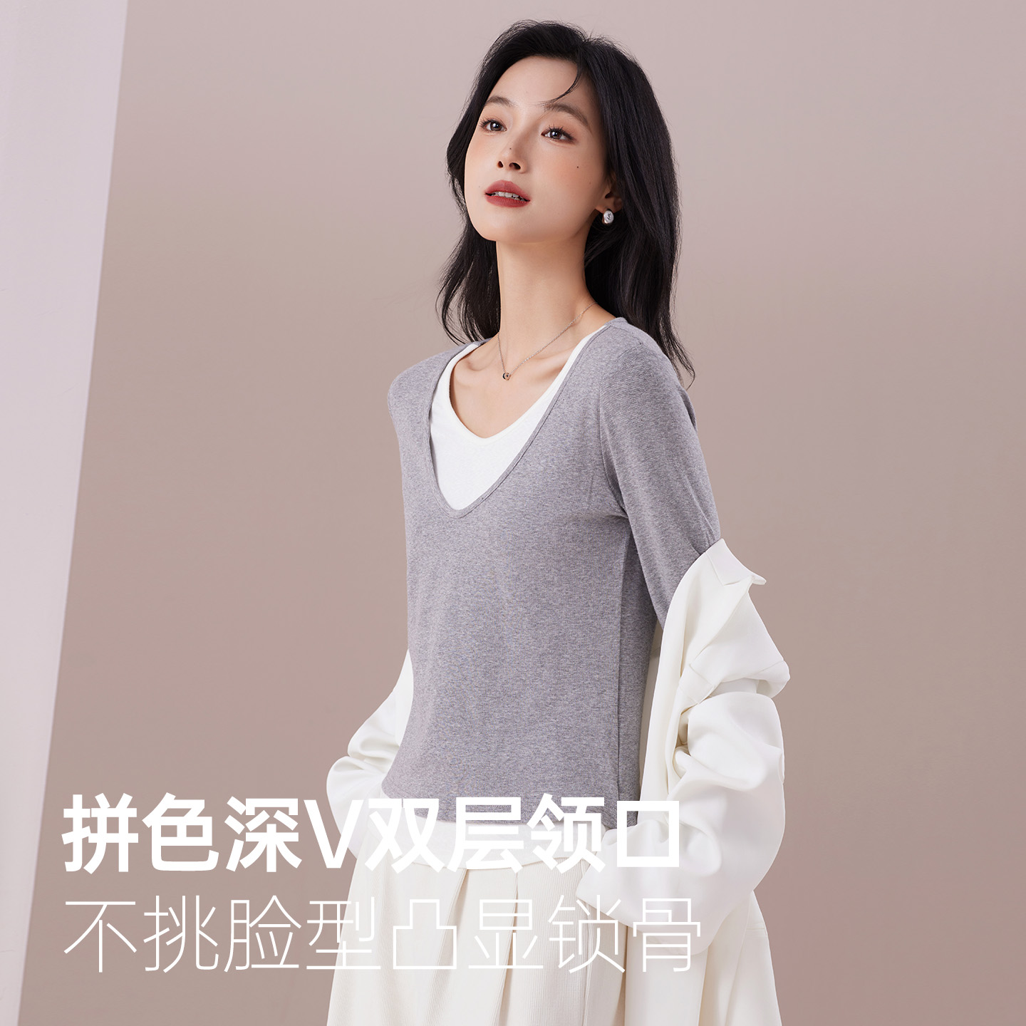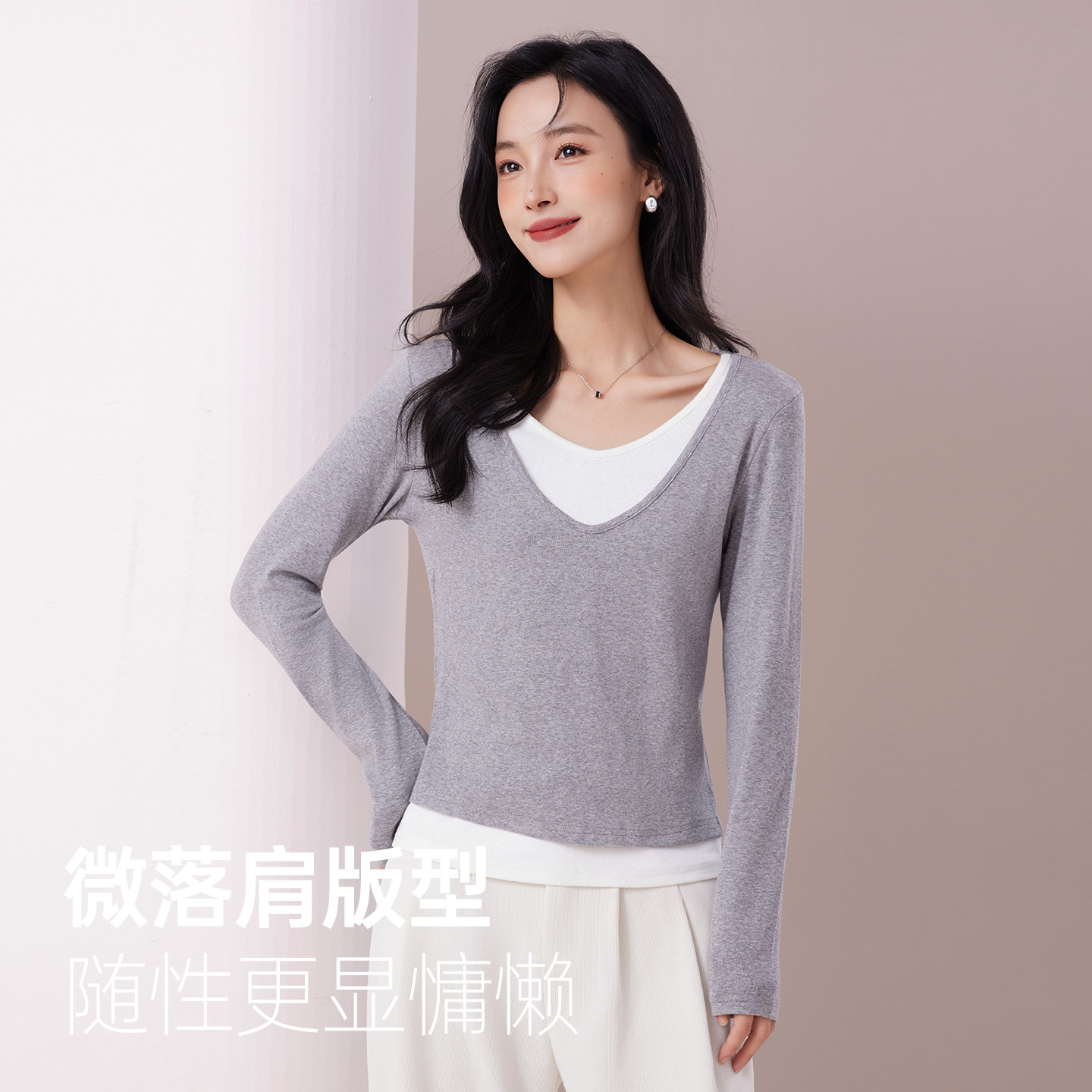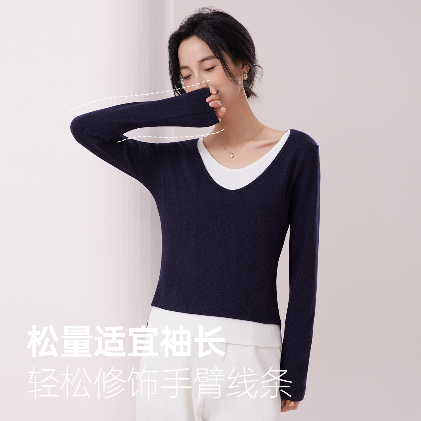针织衫 假两件长袖 v领内搭修身 撞色慵懒薄款 毛衣 上衣2025早秋新款