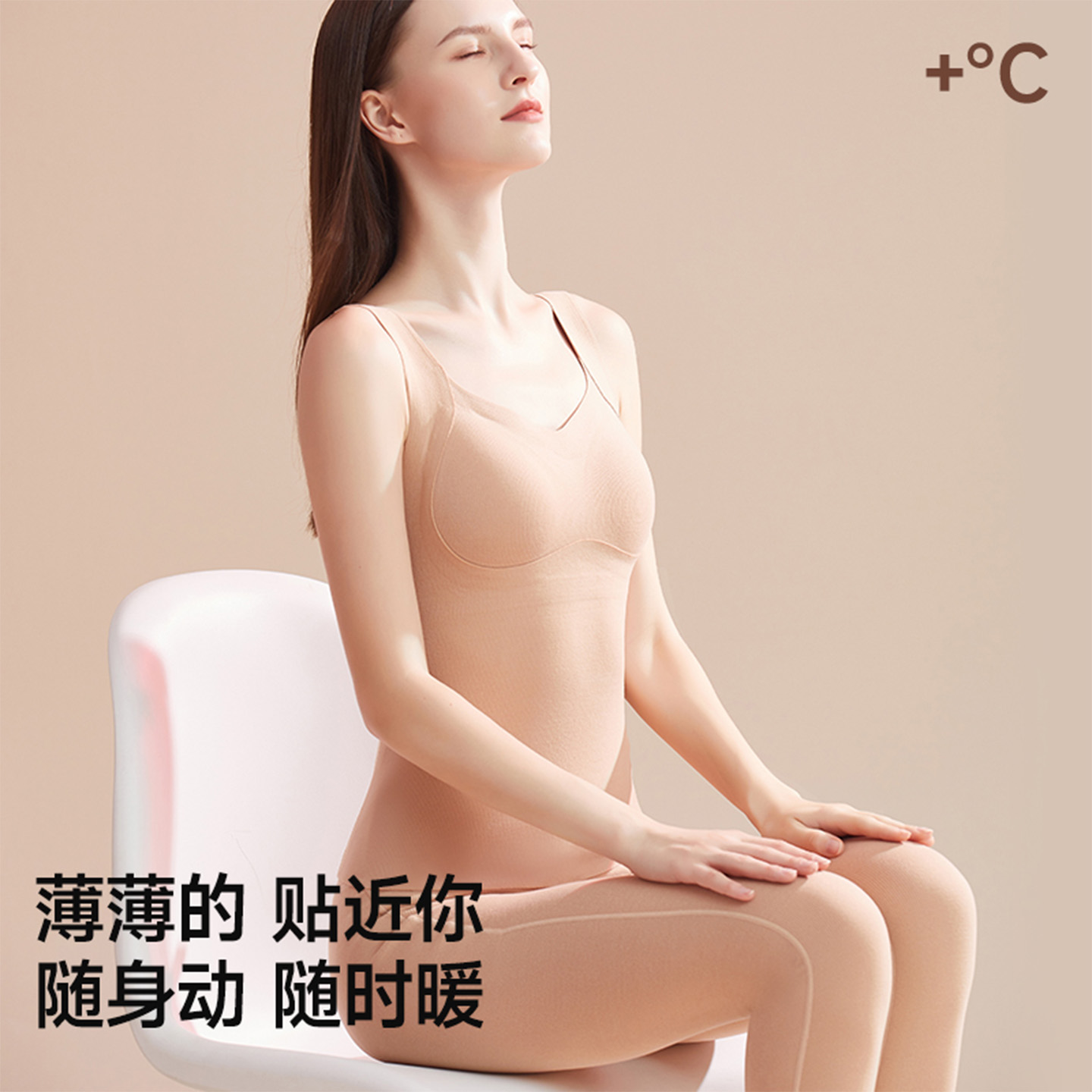 蝶安芬无痕保暖背心女打底春夏加绒加厚内搭带胸垫一体式 发热内衣