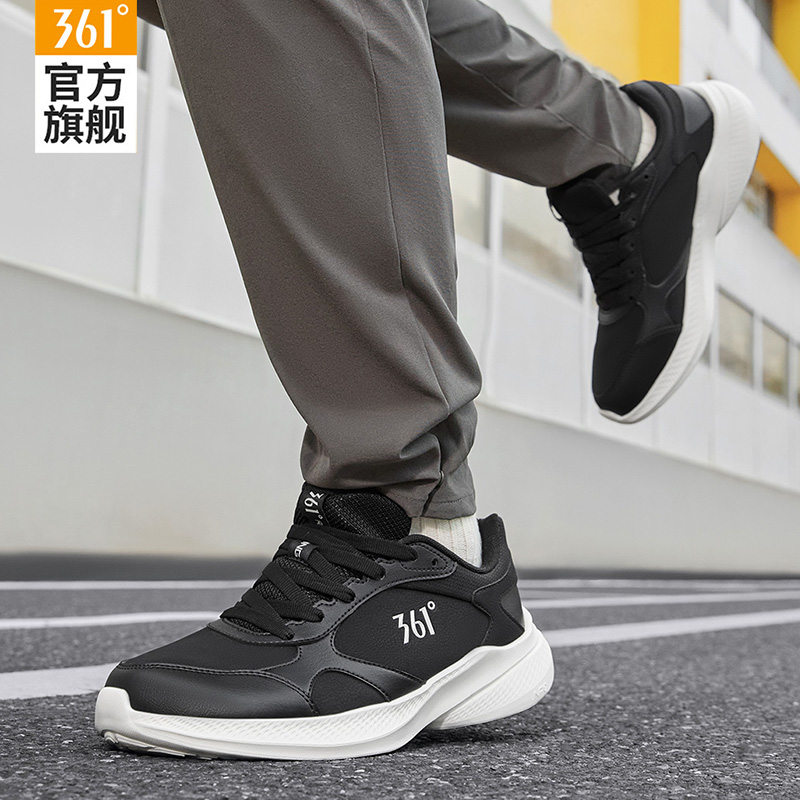 秋季 2025新款 皮面休闲鞋 子男款 361男鞋 轻便耐磨防水跑步鞋 运动鞋