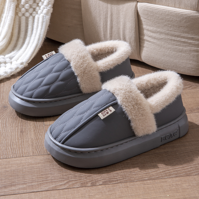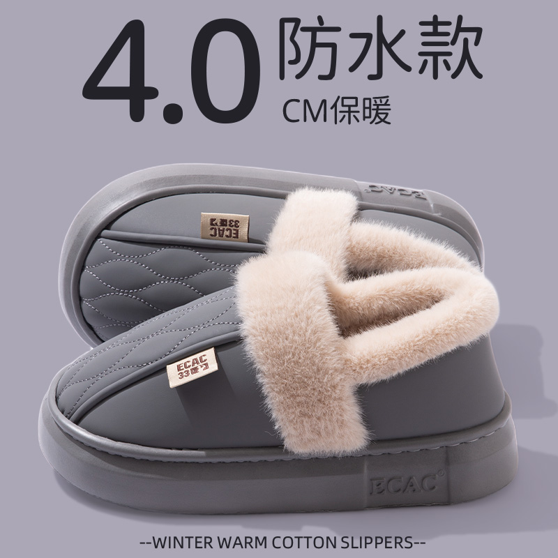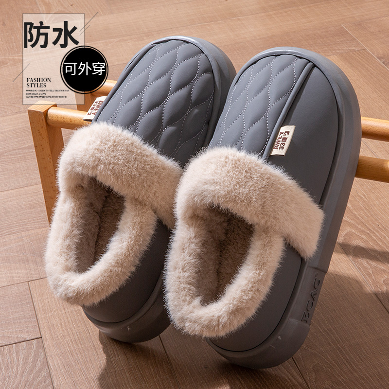 室内家居加绒加厚保暖外穿棉鞋 防水包跟棉拖鞋 2025新款 冬季 女 男款