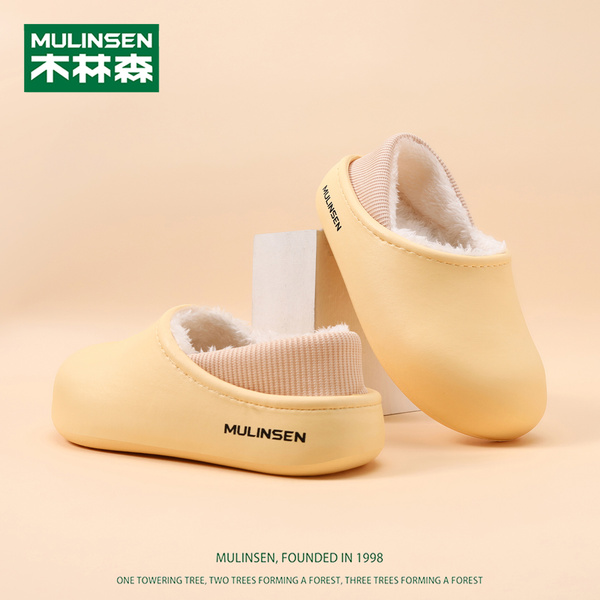 女童 室内保暖防水包头加绒拖鞋 babycrayon原创苹果棉拖鞋 儿童冬季