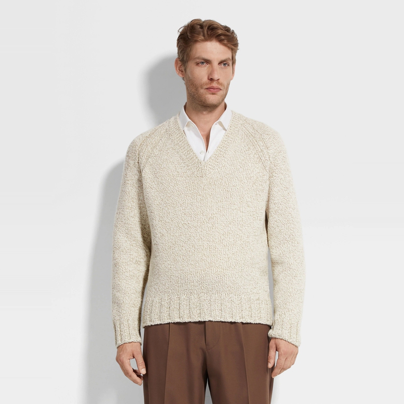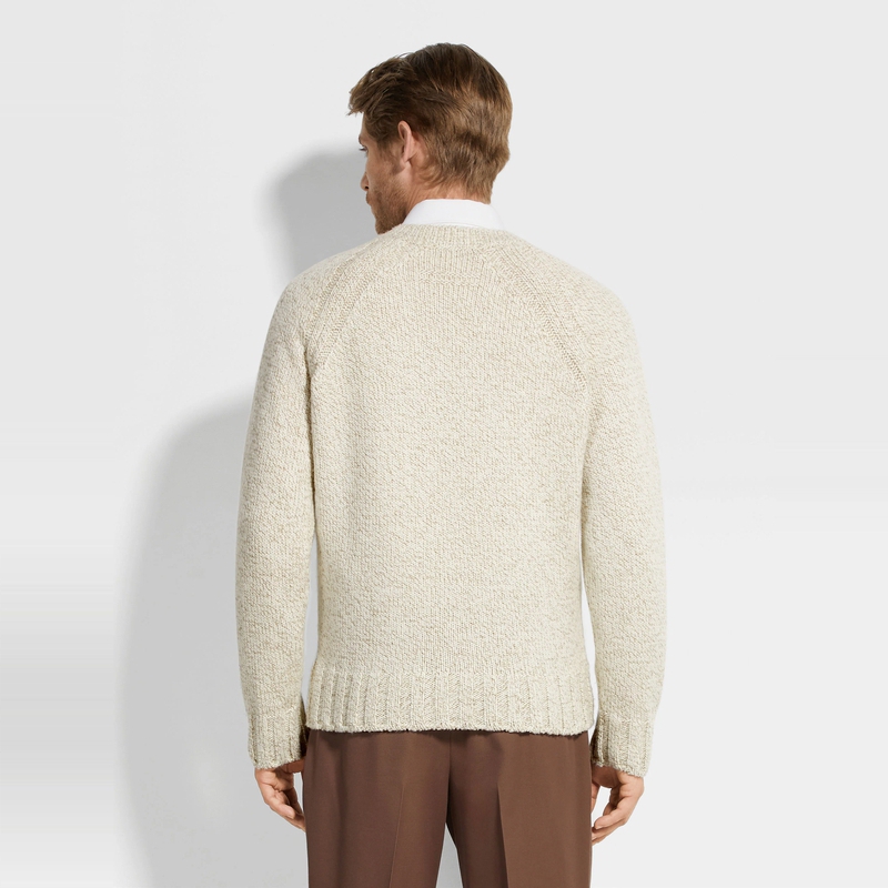 领衫 浅灰褐色配混白色山羊绒及羊毛 24期免息ZEGNA杰尼亚男装