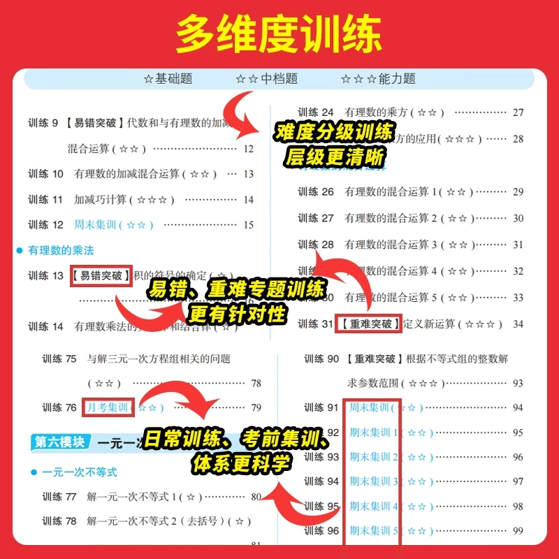 一本七八年级上册数学同步计算题专项强化训练人教版 初一数学课本同步训练口算天天练计算能手学霸满分高效练习册必刷题 北师版