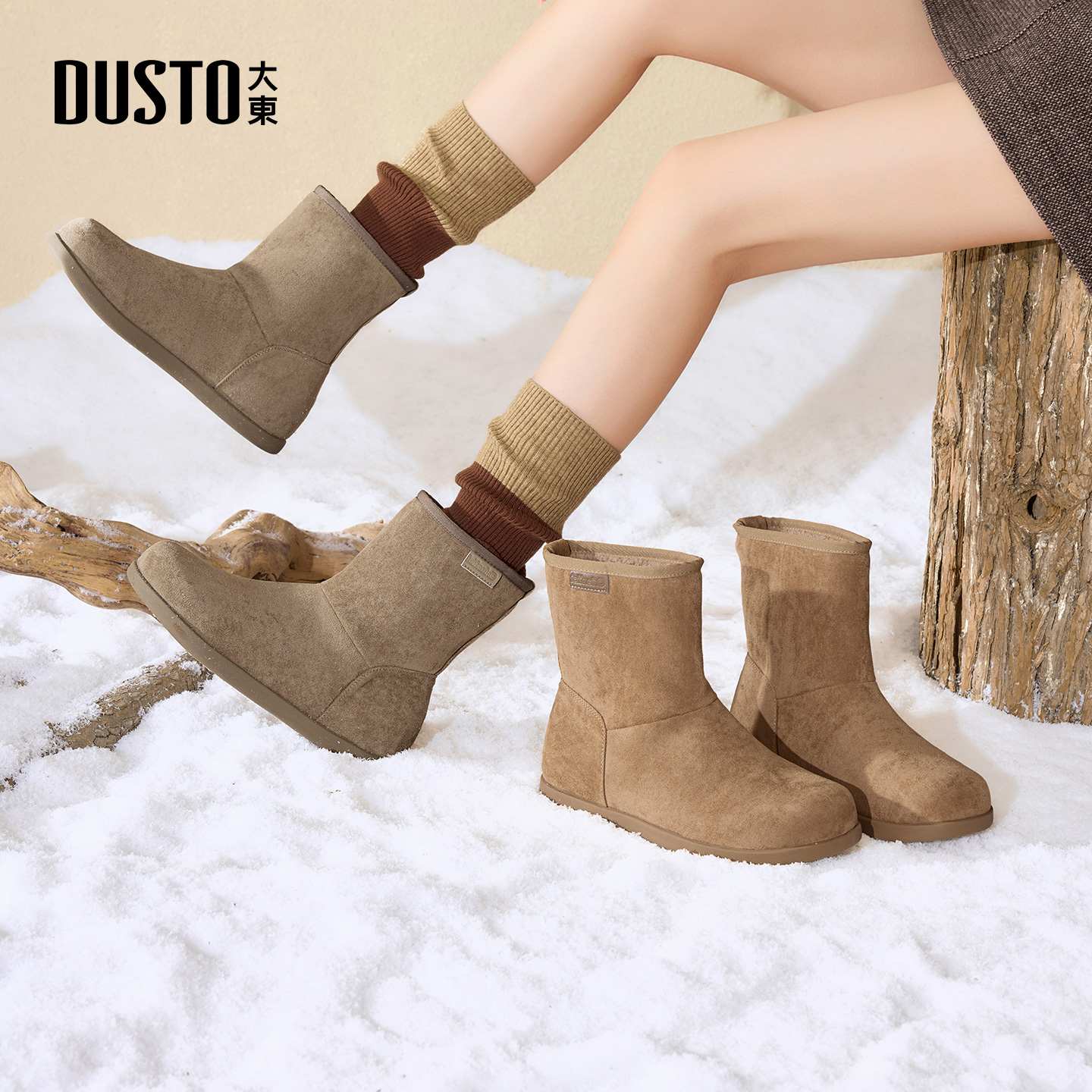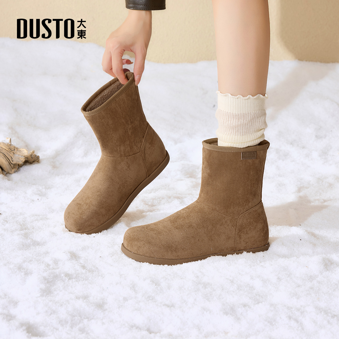 加绒靴子棕色美拉德短靴棉鞋 冬季 2025新款 大东官方勃肯雪地靴女款