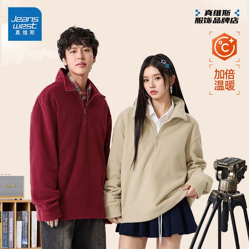 GV真维斯半拉链卫衣男秋冬季 加厚抓绒衣A 双面摇粒绒立领外套男士