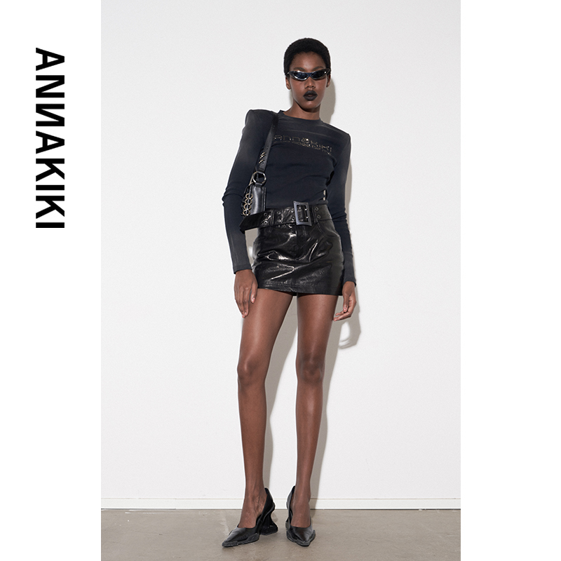 高腰复古侧褶皱a字包臀长款 美式 新款 半身裙女2025夏季 裙子 工装