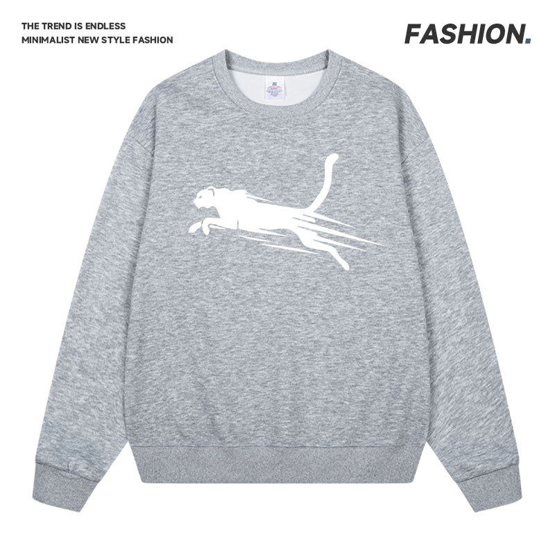 美式 加绒灰色小个子无帽上衣 可爱小狗印花圆领卫衣女秋冬2024新款