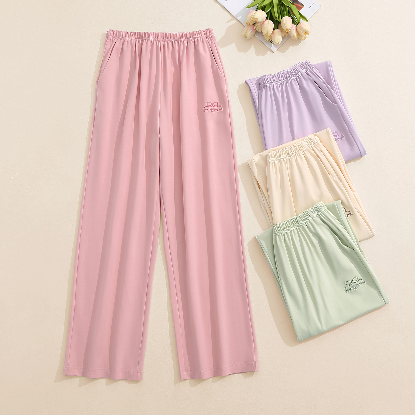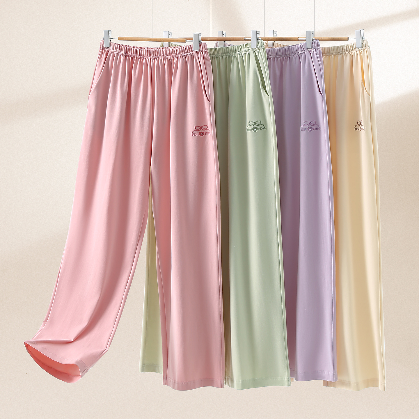 春秋薄款 可外穿单裤 纯色长裤 全棉舒适家居裤 大码 芬腾女士纯棉睡裤