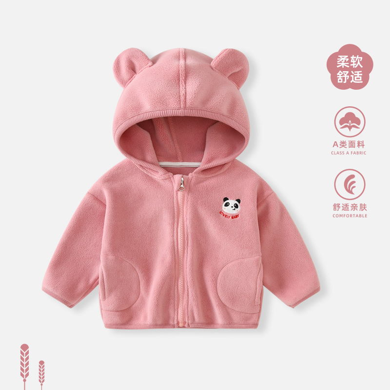 婴儿外套2025春秋款 男宝宝保暖连帽衣服儿童秋冬摇粒绒上衣外出服