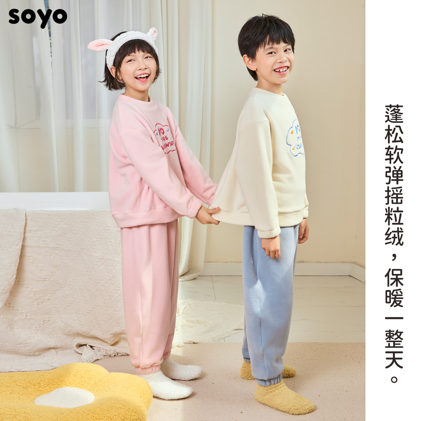 珊瑚绒睡衣情侣秋冬开衫 造福鸟新款 法兰绒家居服套装 蜂狂双11
