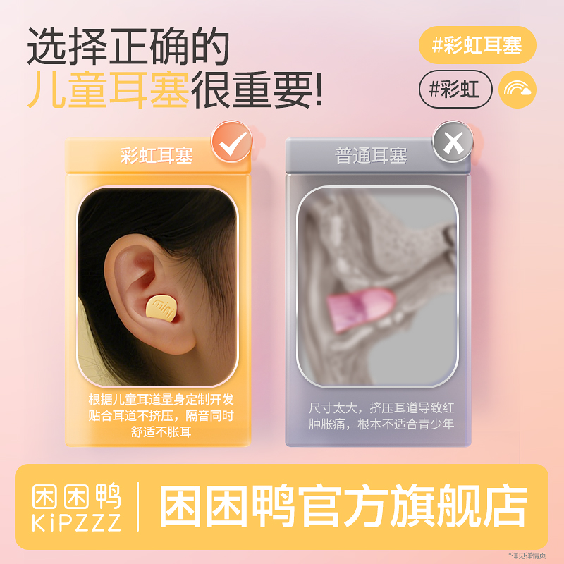 困困鸭彩虹耳塞睡眠睡觉专用超级隔音神器防噪声静音 儿童款