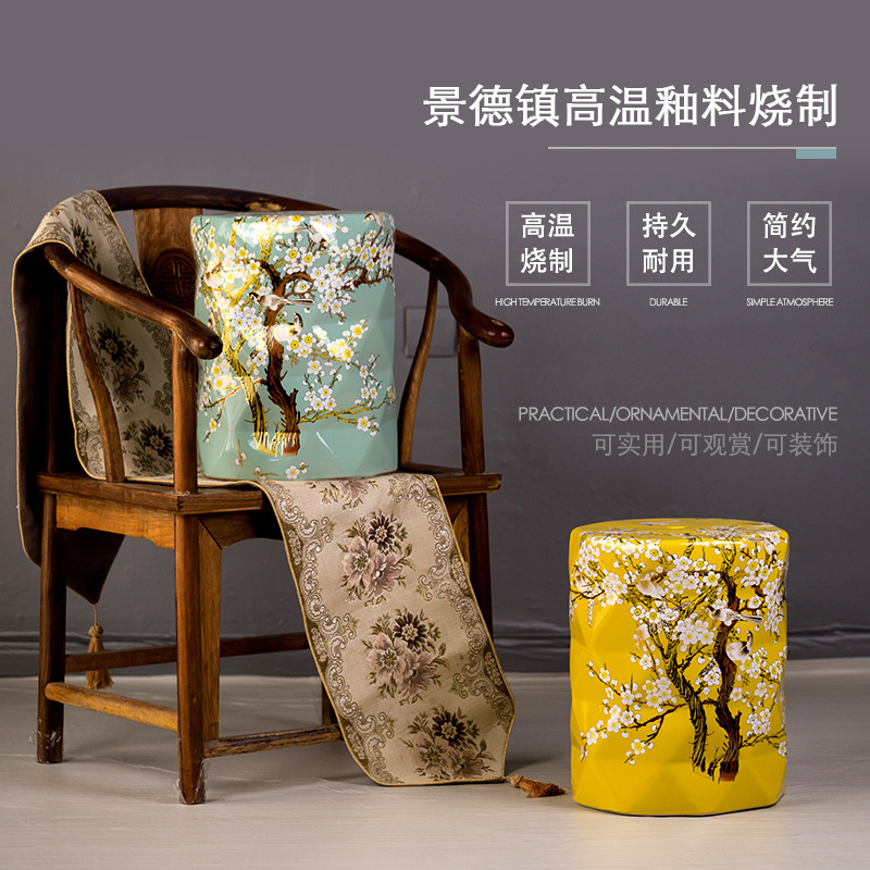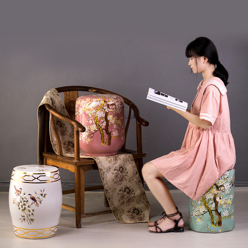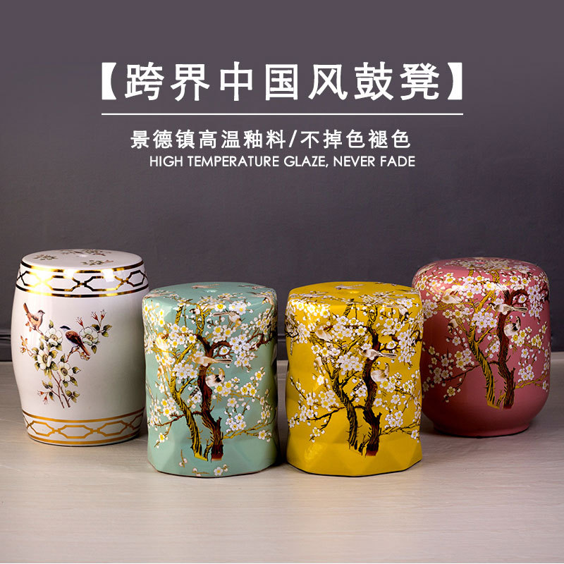 凳花鸟凳子 换鞋 鼓墩绣墩手工 乡村新中式 高温陶瓷鼓凳美式