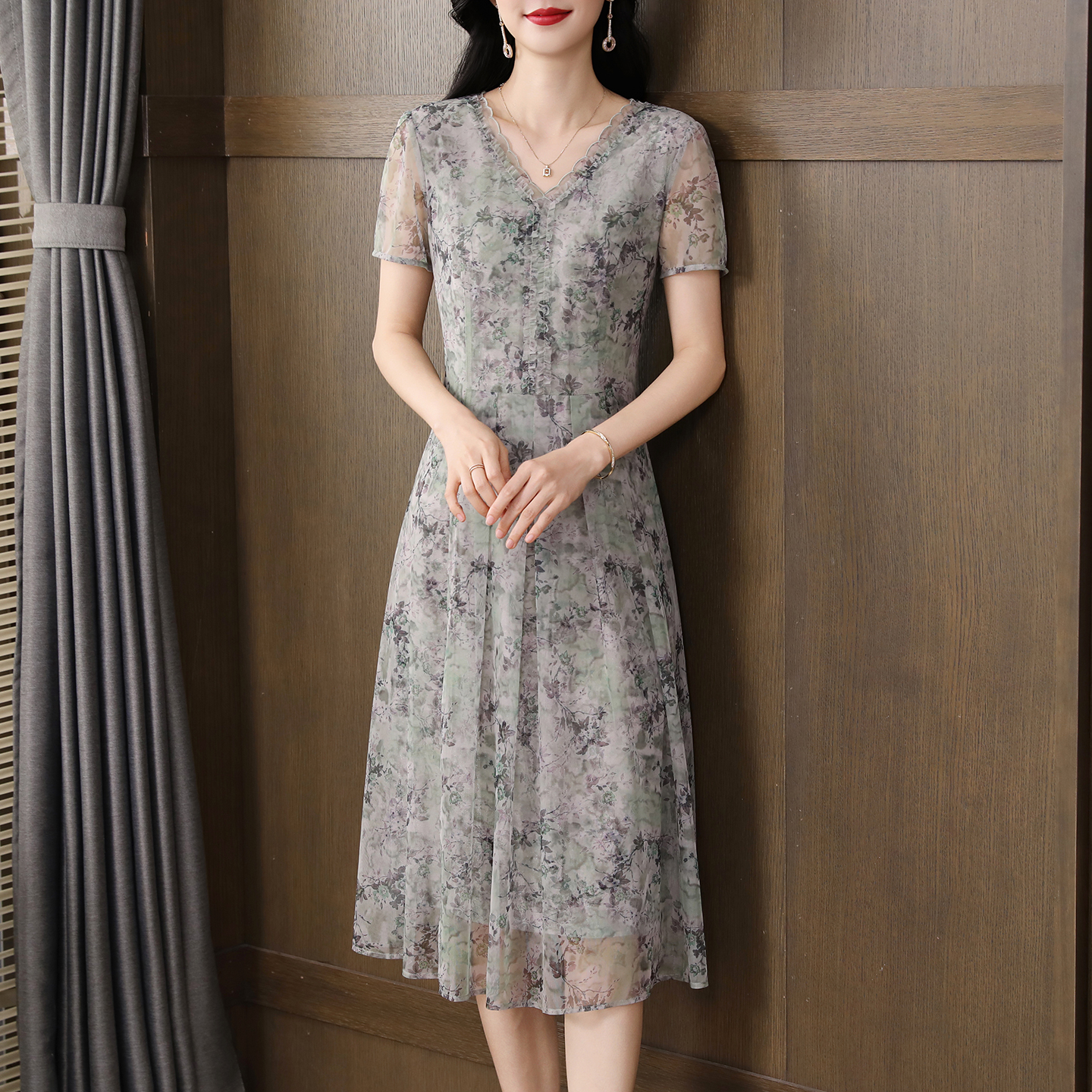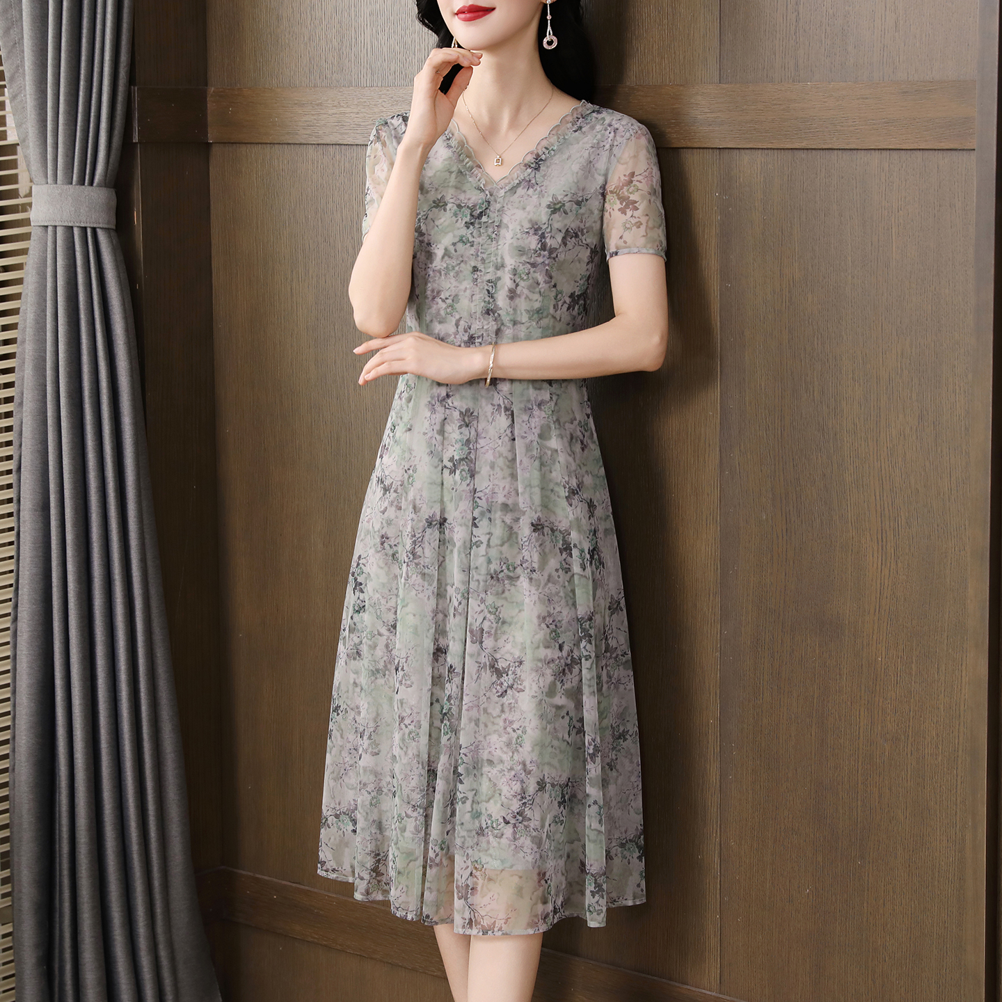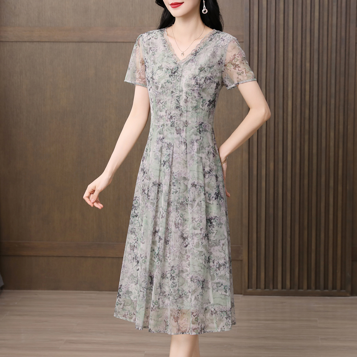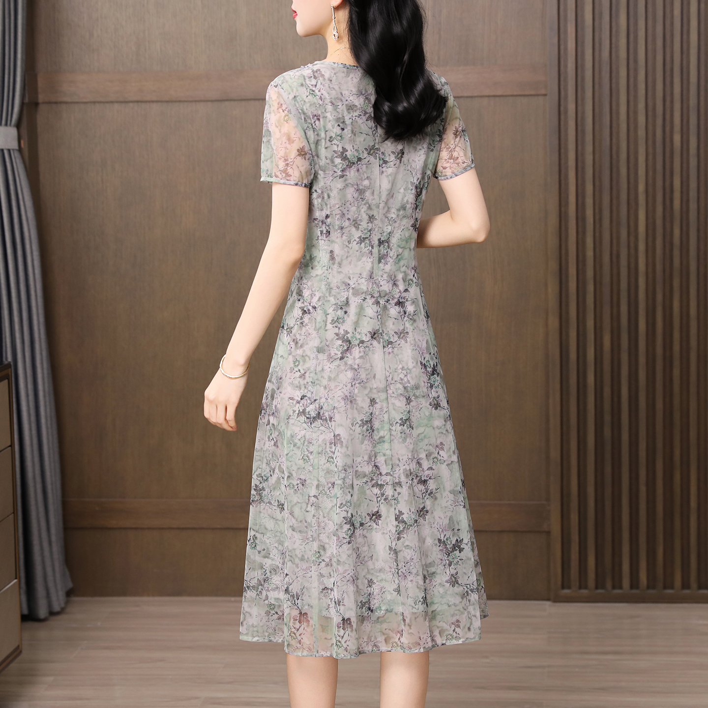 香妮芬国风高贵优雅妈妈连衣裙女2025新款 显气质端庄收腰裙子 夏季