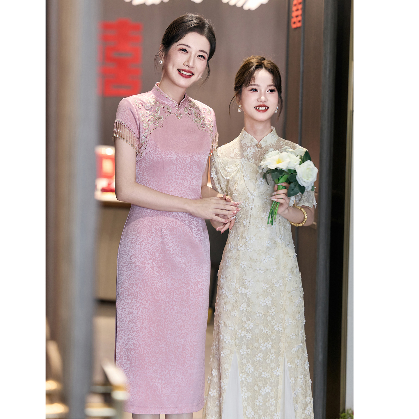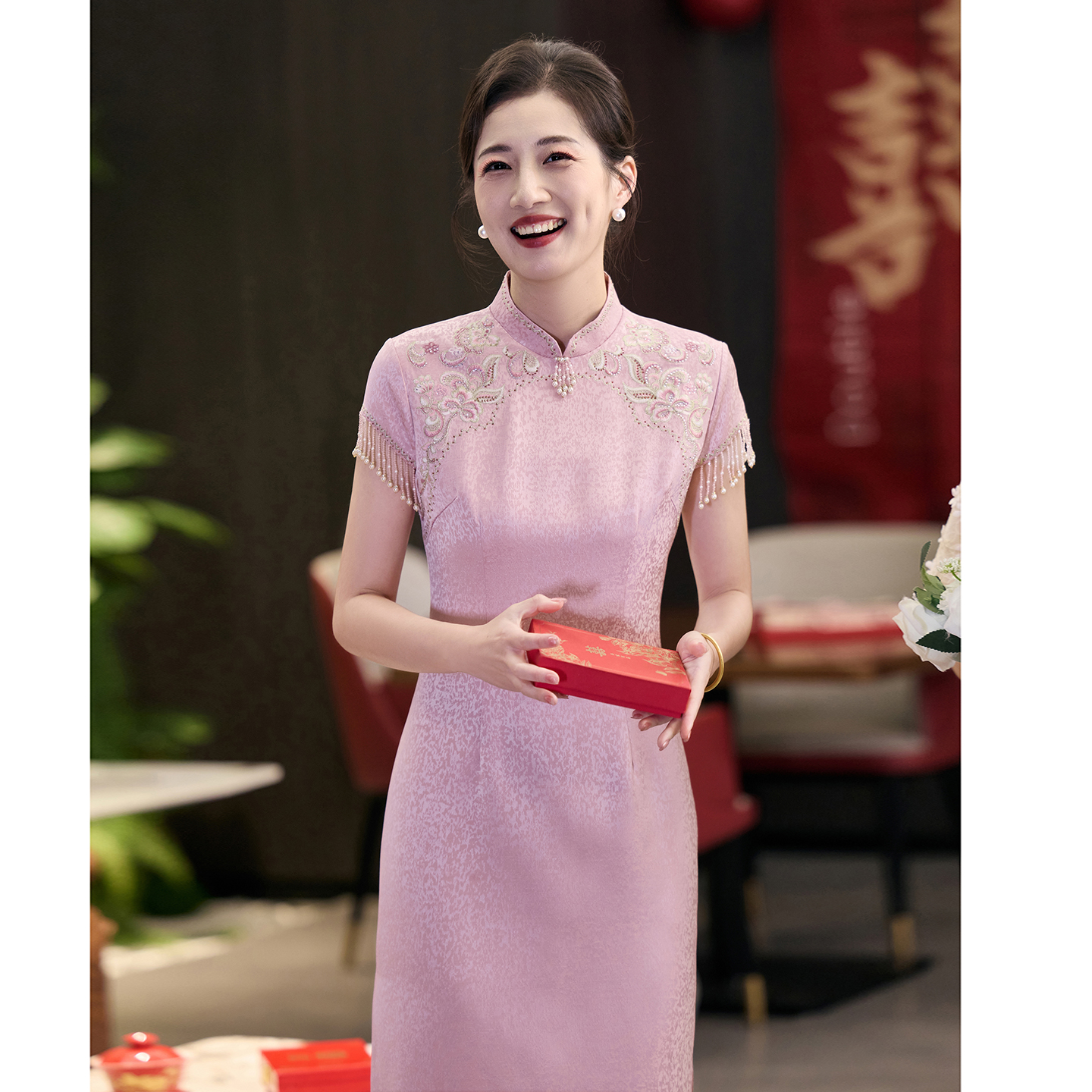中式 短袖 礼仪迎宾颁奖新娘旗袍礼服 红色外嫁女回娘家回门装 2025款