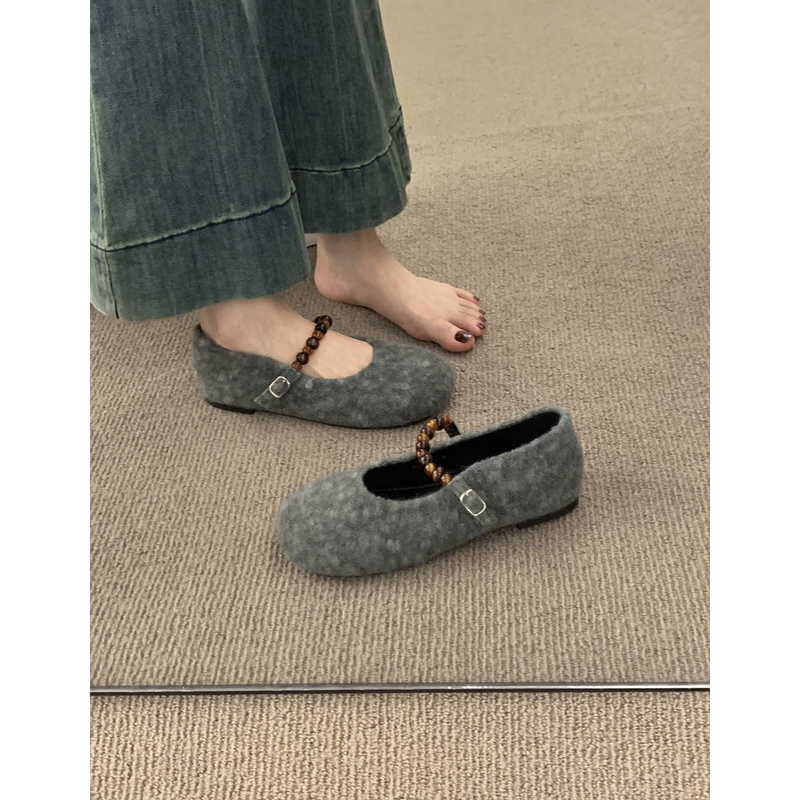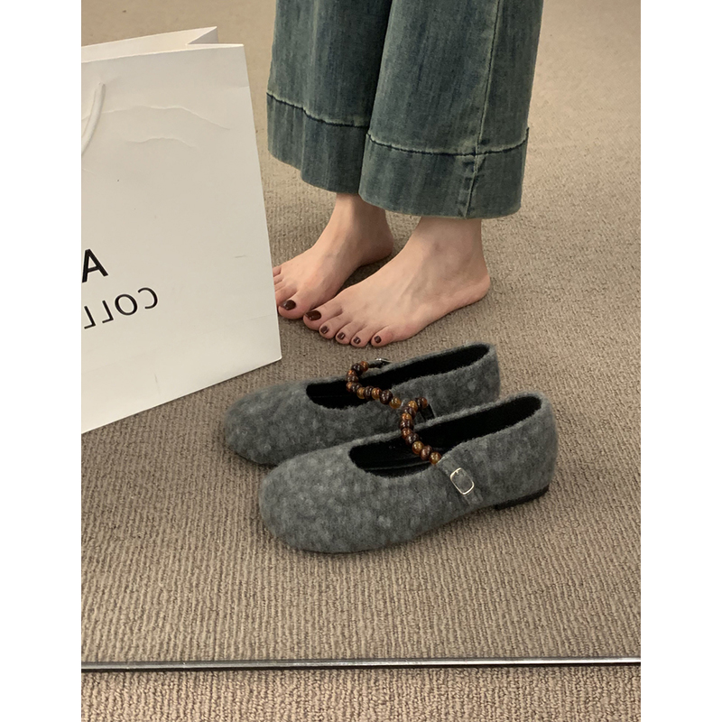 平底勃肯鞋 棉瓢鞋 一字带毛毛鞋 玛丽珍单鞋 女外穿2025秋冬新款 法式
