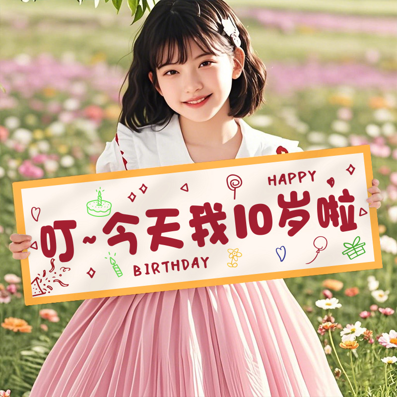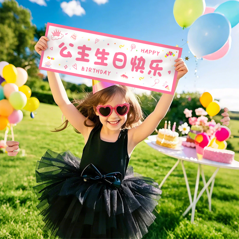 今天我7岁公主生日快乐横幅儿童周岁手拉旗仪式 感拍照道具男女孩