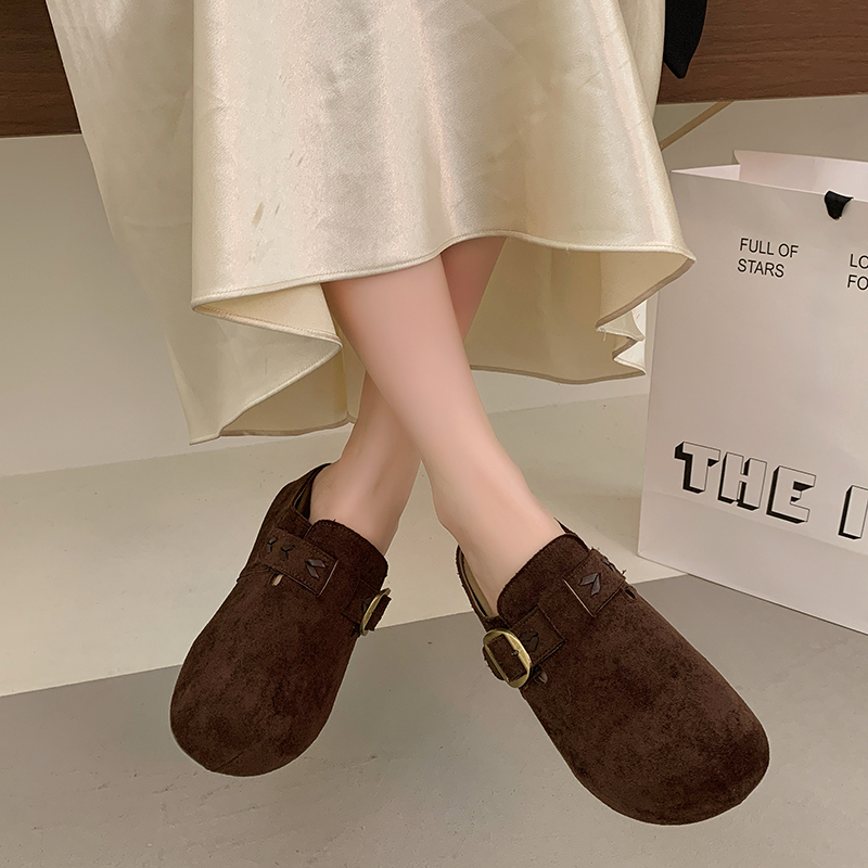 子 复古皮带扣包头外穿懒人休闲拖鞋 厚底勃肯半拖鞋 女2025早秋新款