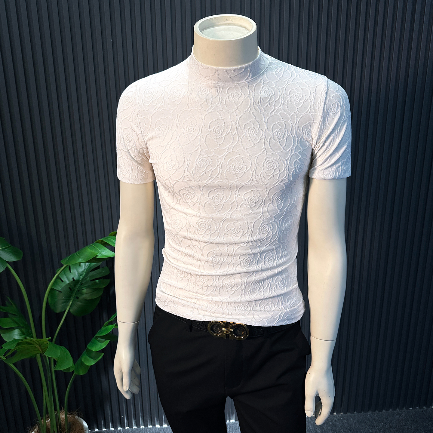 短袖 内搭半高领打底衫 t恤2025新款 高质量修身 痞帅风秋季 提花男士