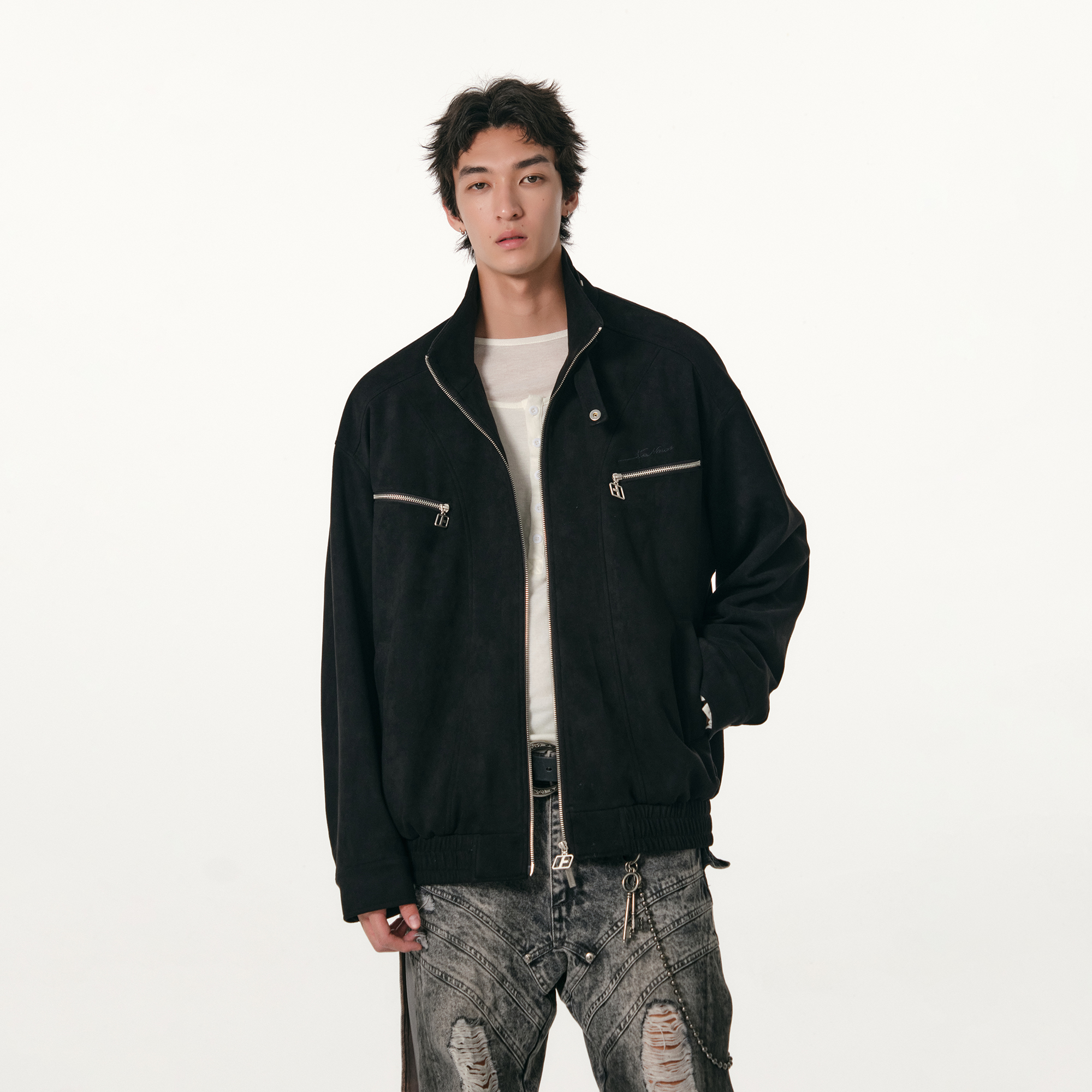 FORNINES立领麂皮绒夹克男女国潮春秋季 复古外套 情侣休闲衣服美式