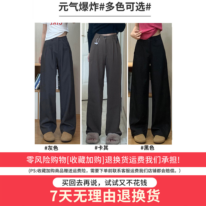 高级宽松bf慵懒垂感直筒加绒休闲阔腿裤 2025新款 子女春秋季 糯米裤